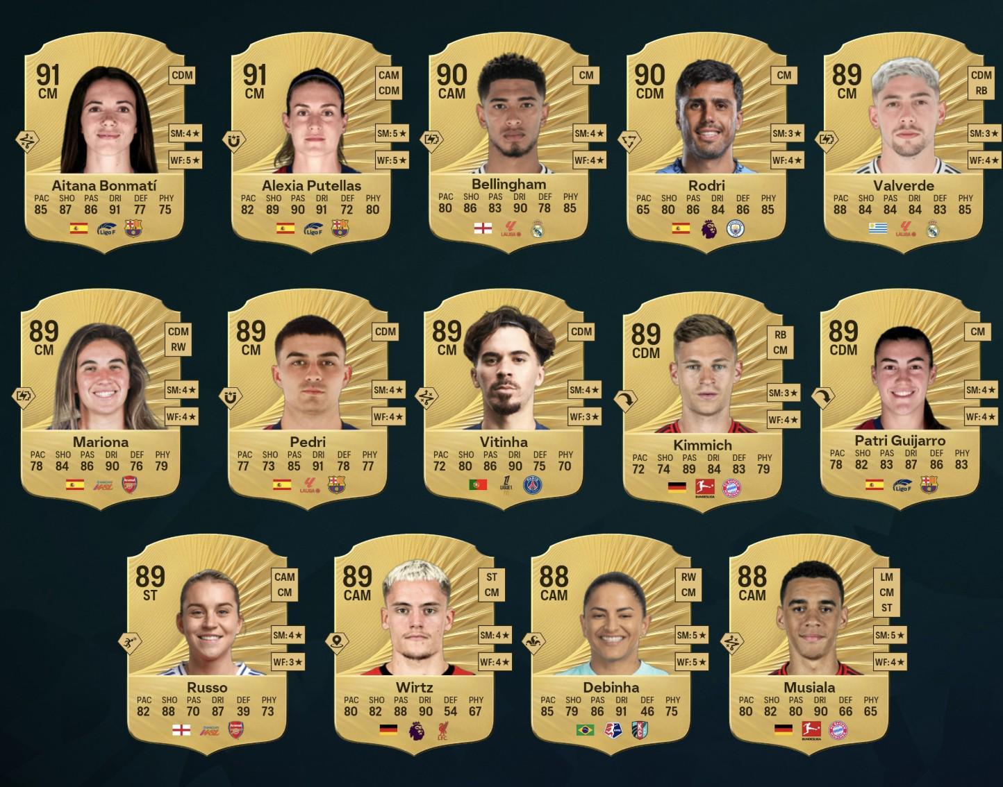 FC26中场前14:贝林&罗德里并列男足第一,维尔茨、82在列
