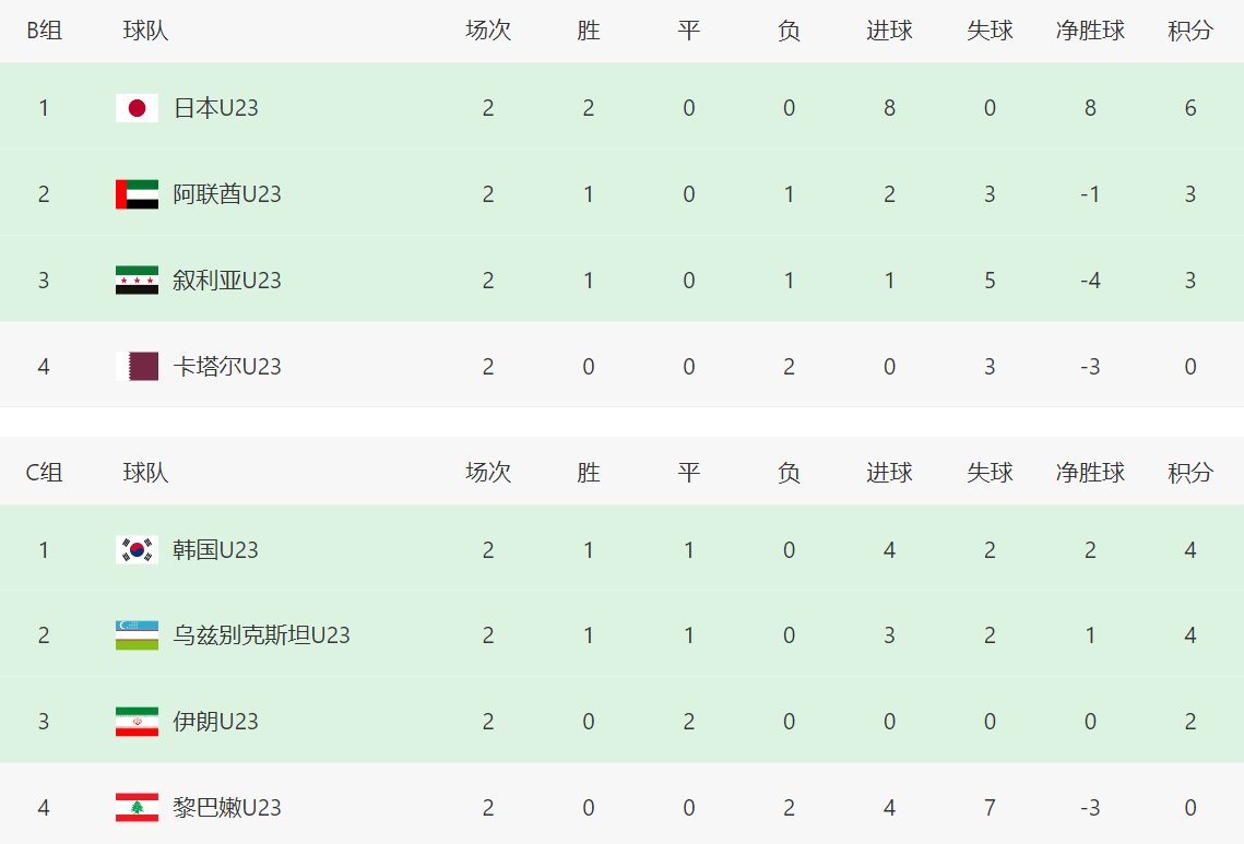 2026年U23亚洲杯小组赛第二轮全部结束,四个小组的积分排名出现有趣的一幕,就是排名小组第一的球队,全部来自东亚或者东南亚,西亚或者中亚全部没有,放在各个级别的亚洲杯也是十分少见。